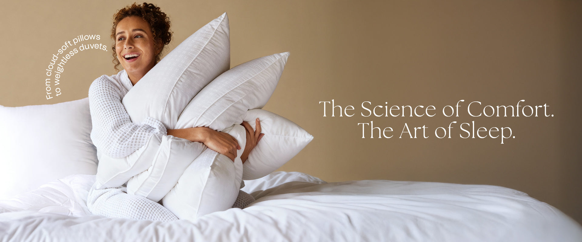 A pillow with a unique, supportive ribbon-cradle inner and a bouncy fill for tried-and-tested, lasting loft.