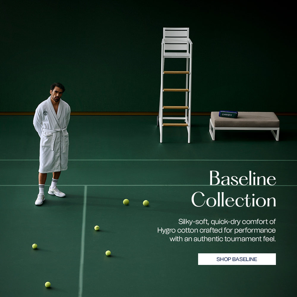 38 years of championship heritage—Christy towels, trusted by Wimbledon and crafted for your home.